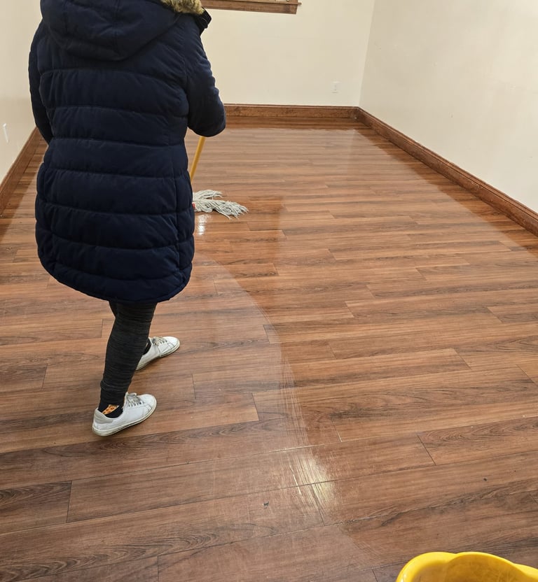 Limpieza profunda y encerado de pisos con atención y precisión.
